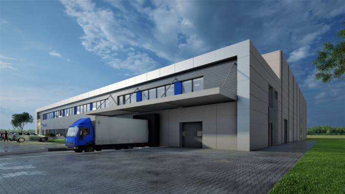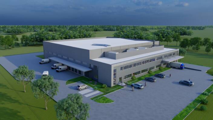 W ramach inwestycji zaplanowano projekt budynku magazynowo – spedycyjnego. Hala wyposażona w nowoczesny system sortowania produktów oraz kontrolę temperatury i wilgotności. Zgodnie z wymaganiami dla przechowywania produktów farmaceutycznych.